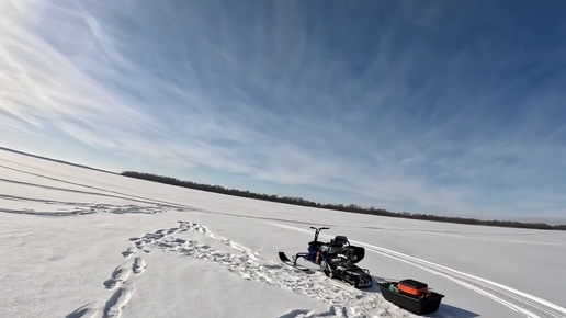 Последние зимние денечки, катаюсь на миниснегоходе хаски, рыбачу.