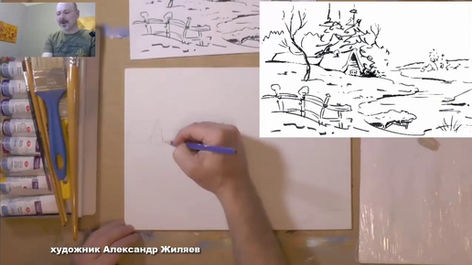 Зимний пейзаж акрилом. Подарок к НГ своими руками.