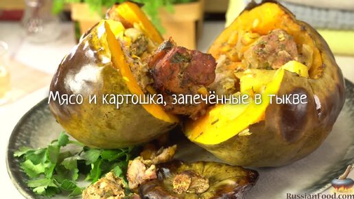 Удивит гостей. Мясо и картошка, запечённые в тыкве