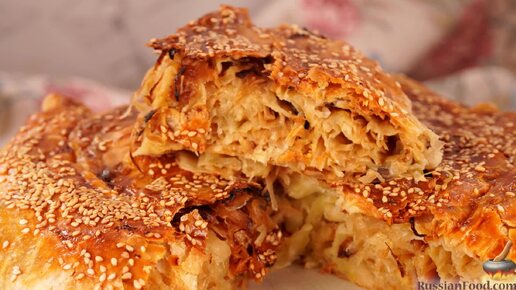 Тоненькое слоёное тесто и бесподобная начинка. Пирог с квашеной капустой и грибами
