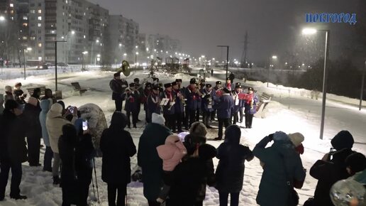 Духовой оркестр продолжает дарить новогоднее настроение новгородцам на городских улицах