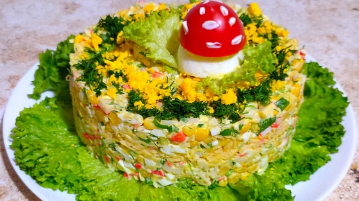 "ВЕСЕЛАЯ ПОЛЯНКА"САЛАТ С КРАБОВЫМИ ПАЛОЧКАМИ💥Ольгины Рецепты.