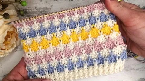 Красивый и простой многоцветный узор спицами для вязания свитеров, джемперов и детских изделий