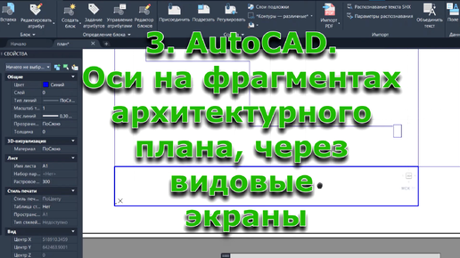 3. AutoCAD. Оси на фрагментах архитектурного плана через, видовые экраны
