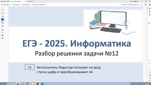 ЕГЭ - 2025. Информатика. Задача 12. Исполнитель Редактор получает на вход строку цифр и преобразовывает её