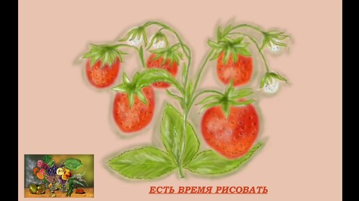Рисунок: Красивая и сочная клубника. Учу рисовать фрукты и ягоды, урок 1