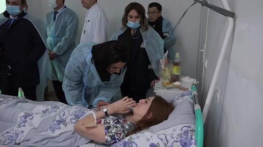 Видеокадры выжившей бортпроводницы Айдан Рагимли из больницы.