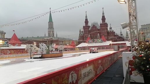 Подготовка катка на Красной площади в Москве.