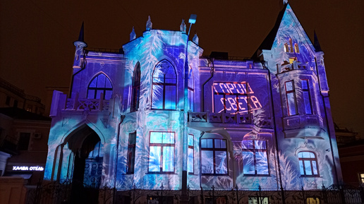 С 20 декабря по 20 января в Москве проходит очередной фестиваль "Город света". В кадре - неоготический особняк Новиковых начала ХХ века.