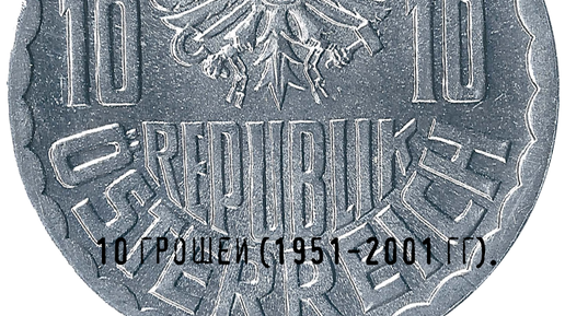 Австрийская Республика. 10 грошей (1951-2001 гг).