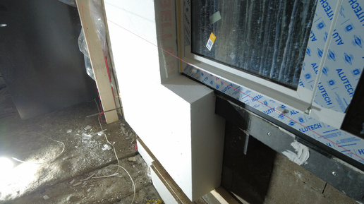 Утепление фасадов пенополистиролом ППС16ф 200мм СФТК Мокрый Фасад. Подгонка нижней Гешки, окно с выносом в плоскость утеплителя Triotherm