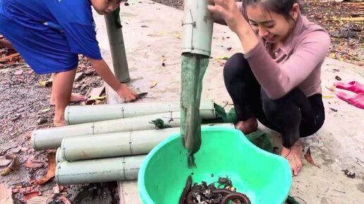 Кто ЭТО ? Вьетнамка наловили змеек или рыбу ?