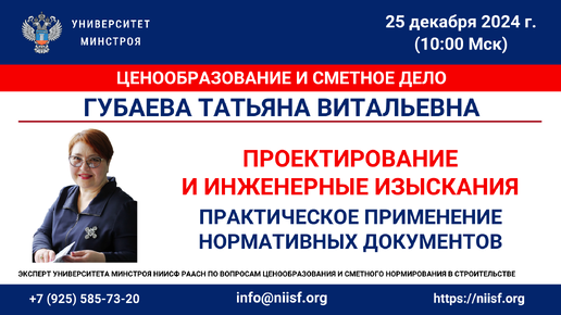ВИДЕО. Губаева Т.В. Обзор практического применения нормативных документов в сметном деле на проектирование и инженерные изыскания