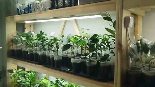 Обзор цитрусового стеллажа: сеянцы, укореняшки, прививки. Прививка магазинной веточки мандарина.