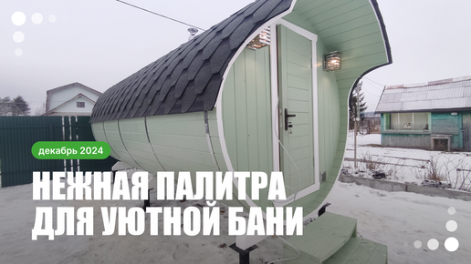 Круглая баня бочка 2,2 на 5 метров в нежно-зелёном цвете