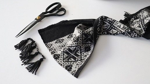 Нашла в шкафу старый шарф и сразу его разрезала. Получилась нужная вещь для зимы