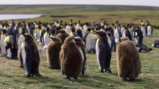 Пингвины впервые увидели кошку