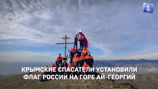 Крымские спасатели установили Флаг России на горе Ай-Георгий