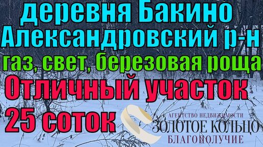 Участок 25 соток в березовой роще в деревне Бакино, Александровский район, Владимирская область.