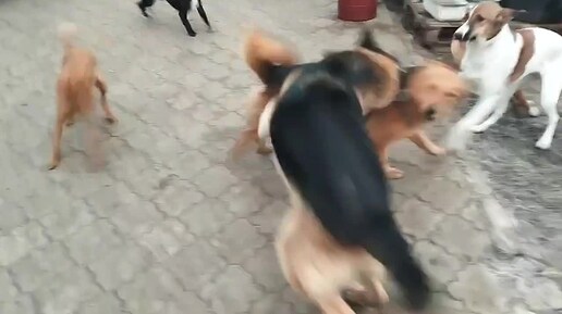 Снег растаял и собаки играют как весной