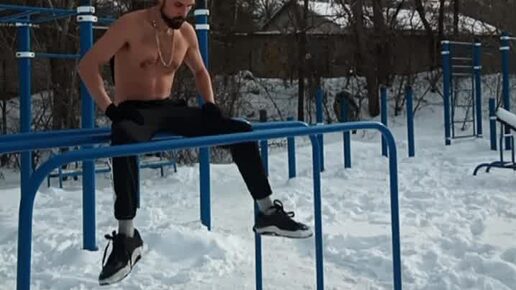 Тренировка на брусьях зимой