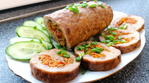 СУПЕР ЗАКУСКА на праздничный стол!Мясной рулет с овощной начинкой.Сытно,вкусно и полезно!