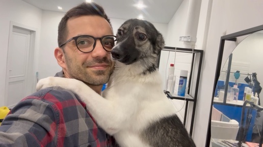 100% доверие бывшей бездомной собаки. Навестили грумера.
