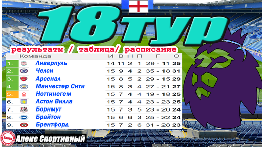 Футбол. Чемпионат Англии (АПЛ) 18 тур. Таблица, расписание, результаты. Суперинициатива Арсенала.