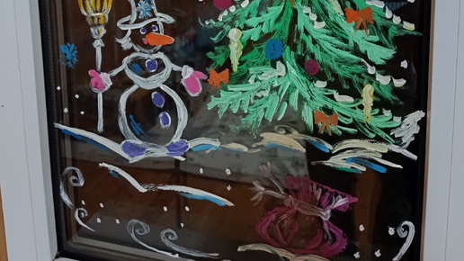 Роспись окна в детской. Рисуем для Новогоднего настроения. Ёлка на Дзене.