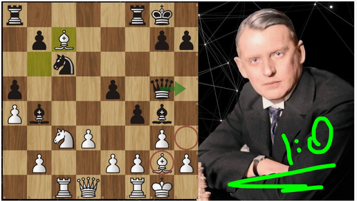Всем известный ЧМ по шахматам Александр Алехин круто выигрывает белыми у Карела Трейбала в ферзевом гамбите, 1925. Покажу мат в доигрывании