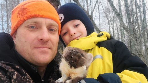 УДАЧНАЯ ПРОВЕРКА КАПКАНОВ НА КУНИЦУ ВМЕСТЕ С СЫНОМ НА СНЕГОХОДЕ!!!