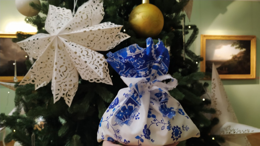 Как сшить вручную лоскутный мешочек с бахромой и завязками для новогоднего подарка. Ссылка на МК Бусинки-мотанки в описании видео