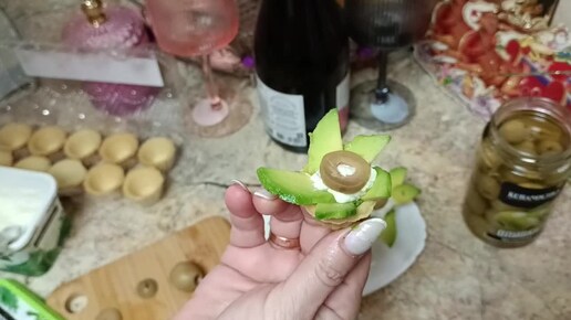 На праздничный стол, быстро и недорого можно приготовить тарталетки с авокадо и оливками.