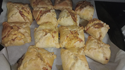 Пеку слойки с сыром на скорую руку. Несмотря на небольшой предпраздничный аврал,печь успеваю, хоть и из магазинного теста, но очень вкусно!