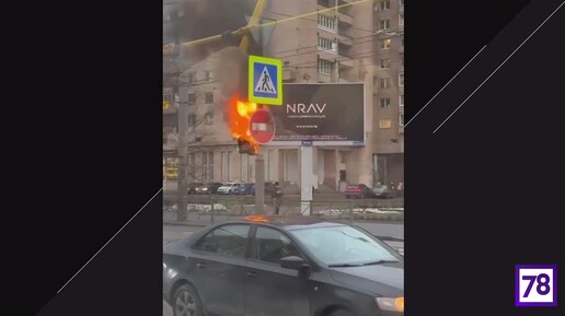 На работе сгорают не только люди: светофор воспламенился в Калининском районе Петербурга