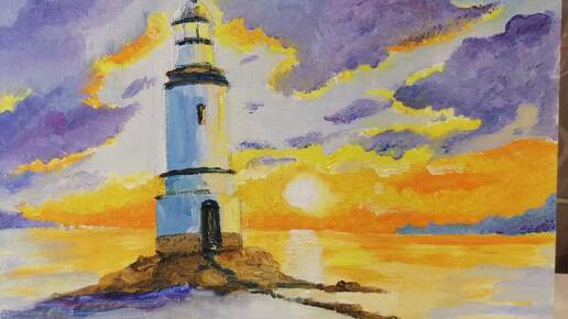 Долго не могла взяться за эту картину.Не ожидала такого результата. Море. Маяк. Картина маслом.