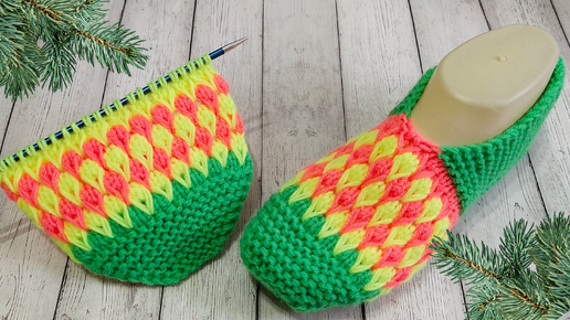 Новогодние следки 🌲 спицами Без шва на ПОДОШВЕ 😊