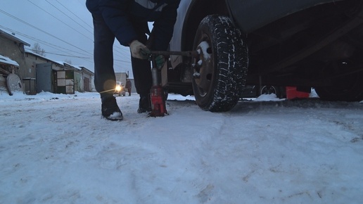 Занесло на эвакуаторе и сразу поставил шипованную резину. Поехал работать