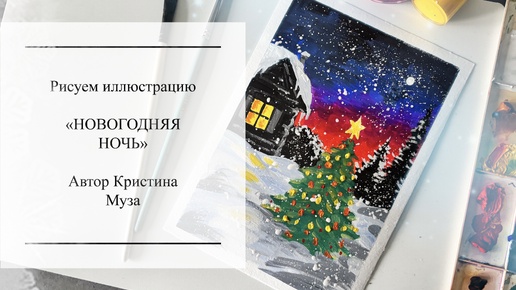 Рисуем открутыку «Новогодняя ночь». Рисование для начинающих. Праздничная ночь, ночь перед Рождеством. Зимний пейзаж. Рисунок с ёлочкой.