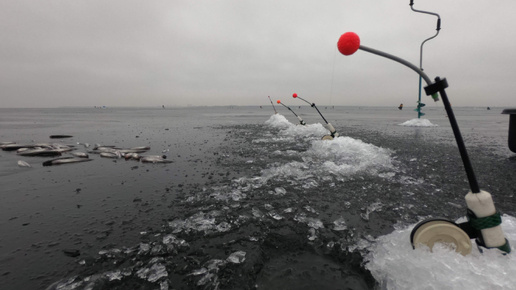 Ловля корюшки на дамбе Финского залива