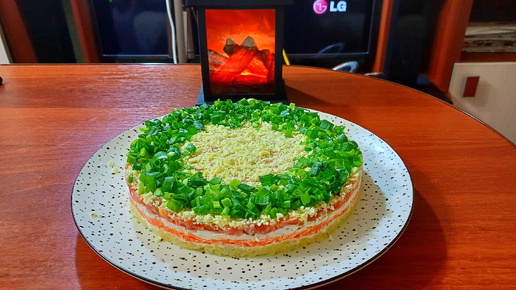 САЛАТ МЕРИДИАН С СОЛЁНОЙ ФОРЕЛЬЮ. ЯЗЫК ПРОГЛОТИШЬ.