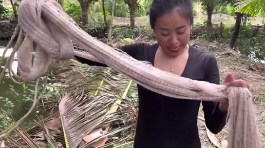Вьетнамка ловит РЫБУ неводом больше ЧЕМ она САМА