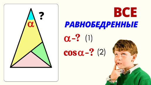 ЧЕТЫРЕ РАВНОБЕДРЕННЫХ. Найти угол и его косинус.