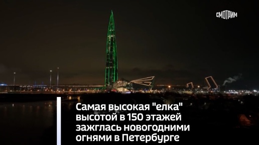 Самая высокая "елка" высотой в 150 этажей зажглась новогодними огнями в Петербурге