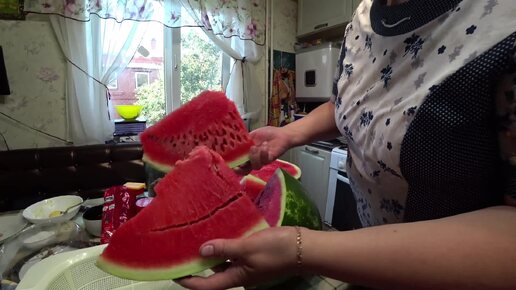 Разрезаю огромный арбуз