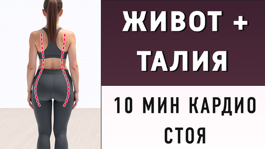 10 мин СТРОЙНЫЙ ЖИВОТ И ТАЛИЯ - кардио полностью стоя (с приседаниями и без прыжков)