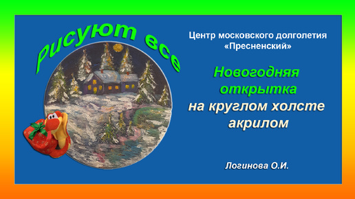 Новогодняя открытка своими руками. Круглый холст. Акрил. Видео Логинова Ольга