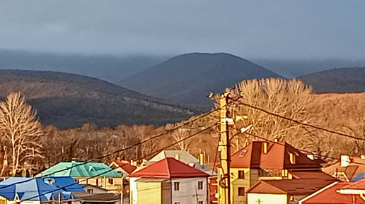 Сегодня удивительное небо. Пол неба черного, пол неба солнечного
