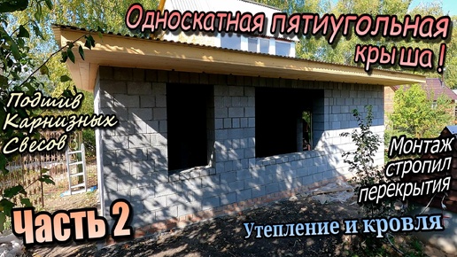 👷♂️Односкатная пятиугольная крыша \ Утепление перекрытия \ Подшив свесов \ Доборы окон \ Часть 2 (сентябрь 2024)