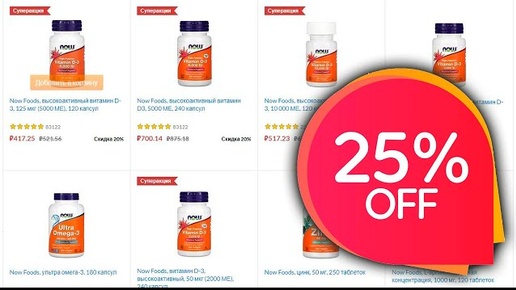 Сегодня Скидки 25% на Now Foods очень крутой бренд